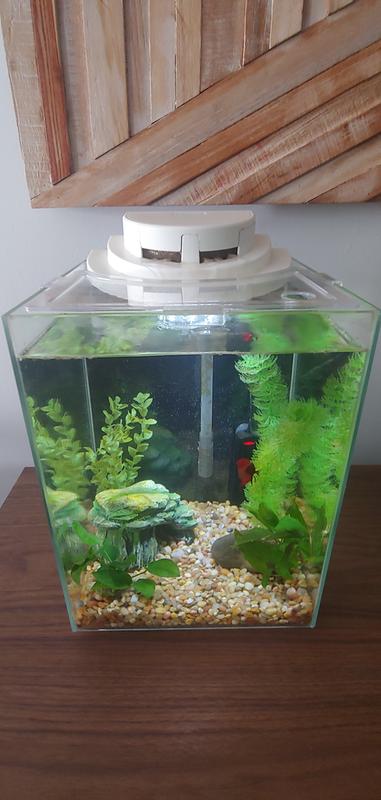 Also designed a plug for the whole in the lid. Unfortunately I think because of the water flow my betta fish did not seem happy and seemed somewhat stressed in his new crib. Top Fin Revival Waterfall Gallon Desk Aquarium fish.